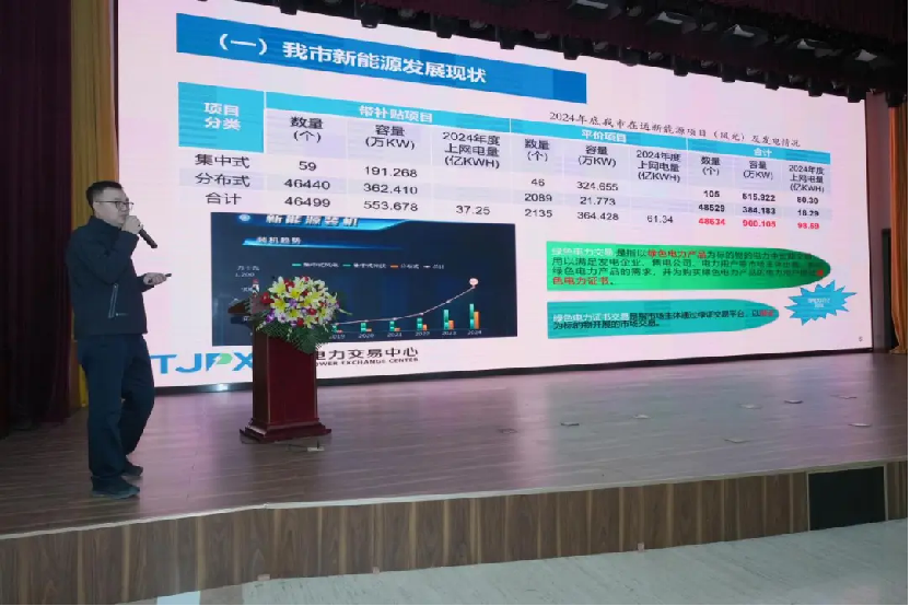 天津电力交易中心高级专家王中荣以"绿电交易的天津实践"为主题,分享了天津绿电市场的创新成果。