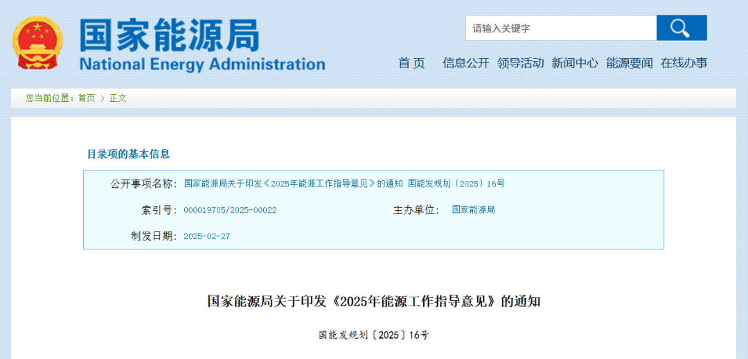 国家能源局关于印发《2025年能源工作指导意见》的通知